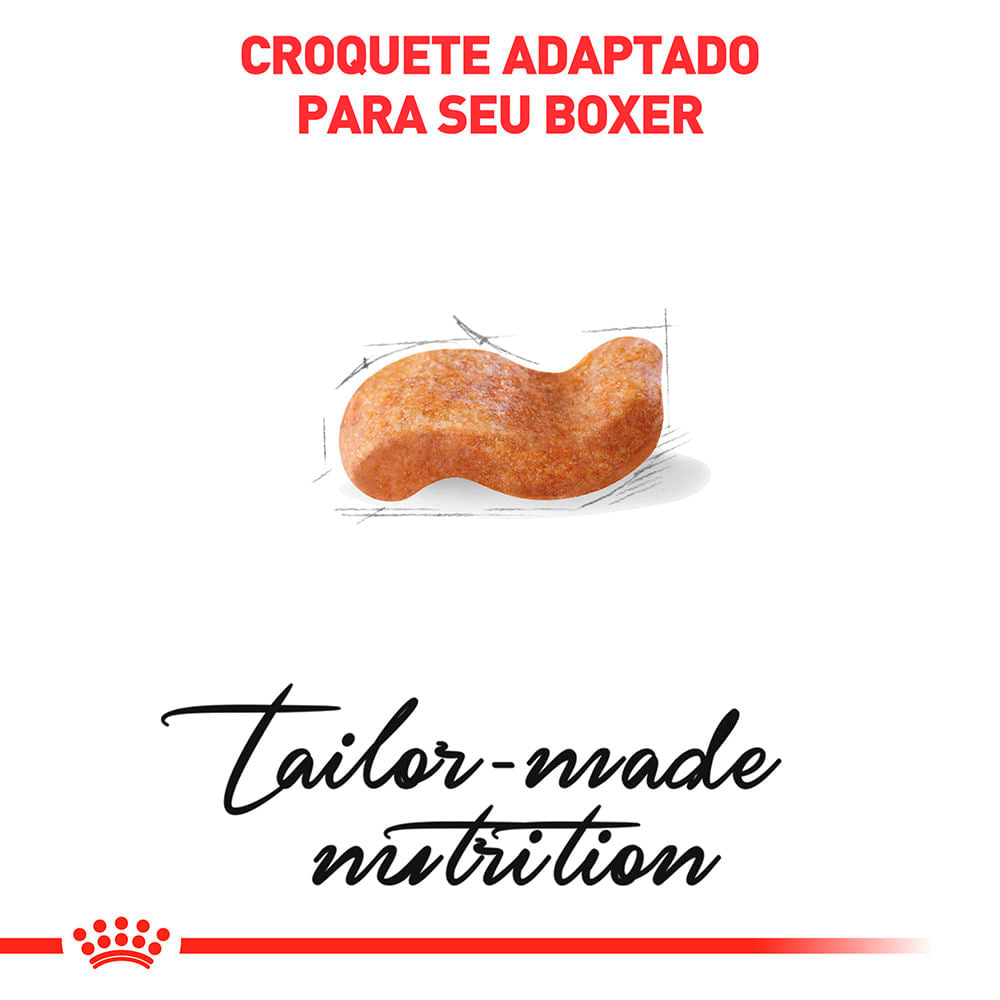 - Croquete exclusivamente desenvolvido para facilitar a preensão e estimular o Boxer a mastigar;