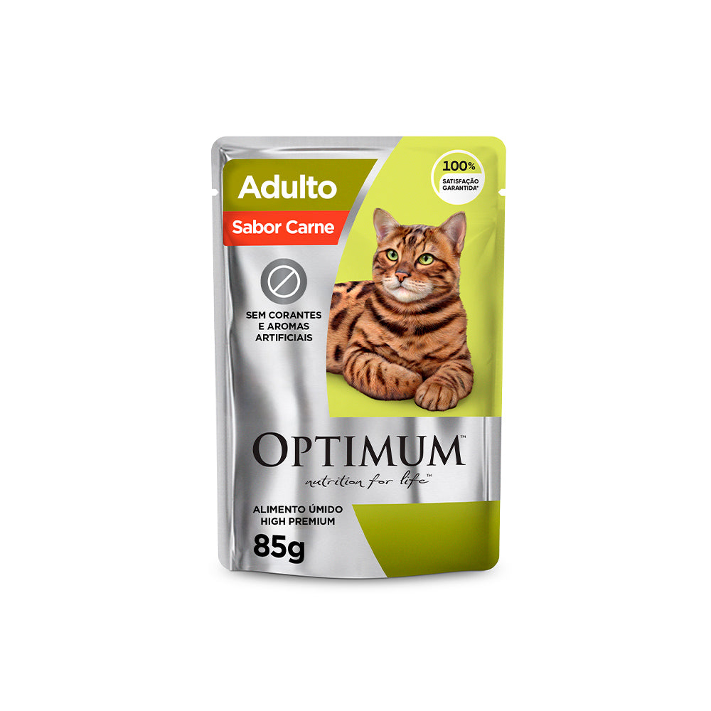 Ração Úmida Optimum Sachê para Gatos Adulto Sabor Carne 85 g